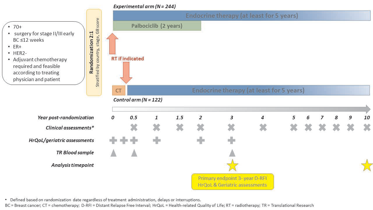 Weil die Verträglichkeit einer Langzeitbehandlung (zwei Jahre) mit Palbociclib bei älteren Patienten ein Problem sein könnte, wird eine Sicherheits-Interimsanalyse basierend auf der Rate der Behandlungsabbrüche im experimentellen Arm durchgeführt.