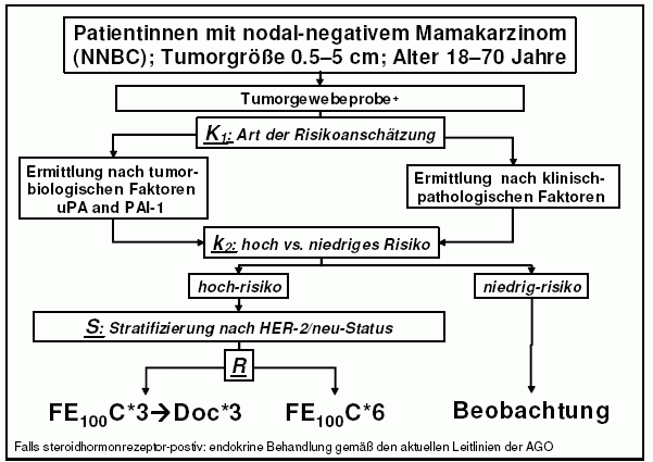 Randomisierter Vergleich adjuvanter Chemotherapieschemata 6x FEC vs. 3x FEC gefolgt von 3x Docetaxel bei Patientinnen mit nodal-negativem Mammakarzinom und hohem Rezidivrisiko: Therapieoptimierung und Untersuchung der klinisch-pathologischen Selektionskriterien im Vergleich zu biochemischen Selektionskriterien