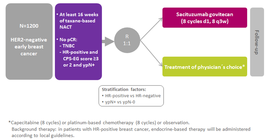 Phase III postneoadjuvant study evaluating Sacituzumab Govitecan, an Antibody Drug Conjugate in primary HER2-negative breast cancer patients with high relapse risk after standard neoadjuvant treatment - SASCIA